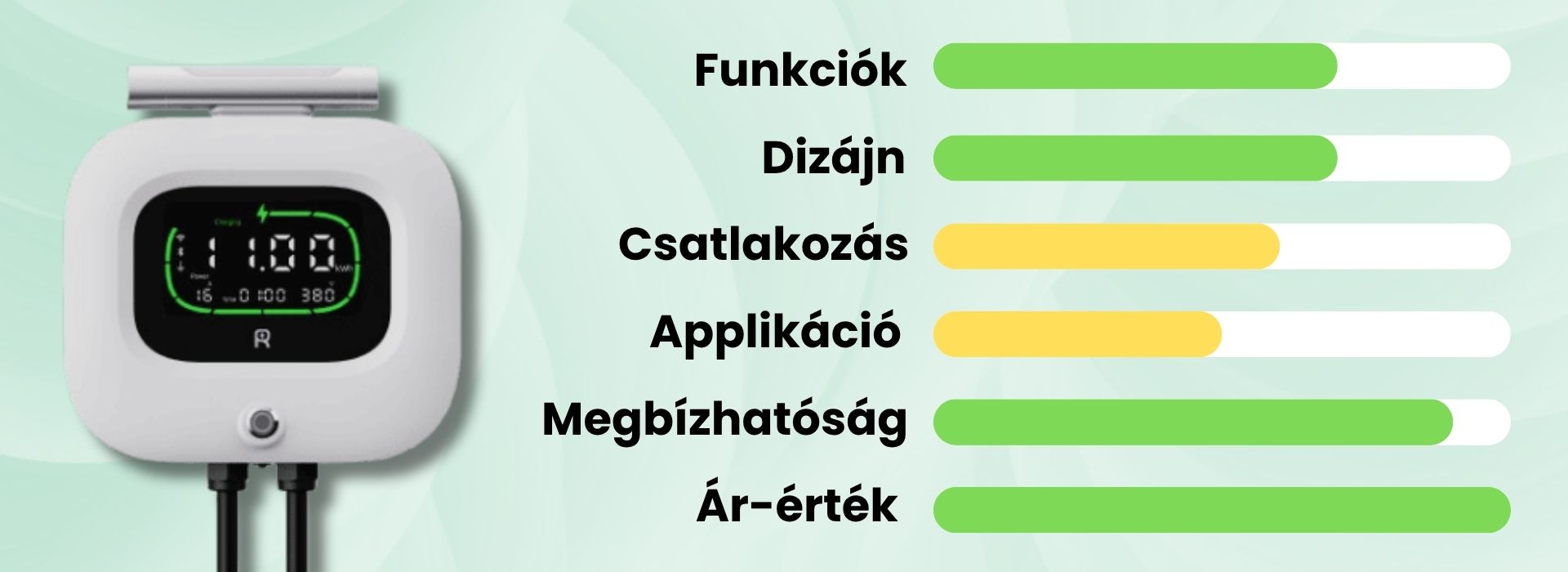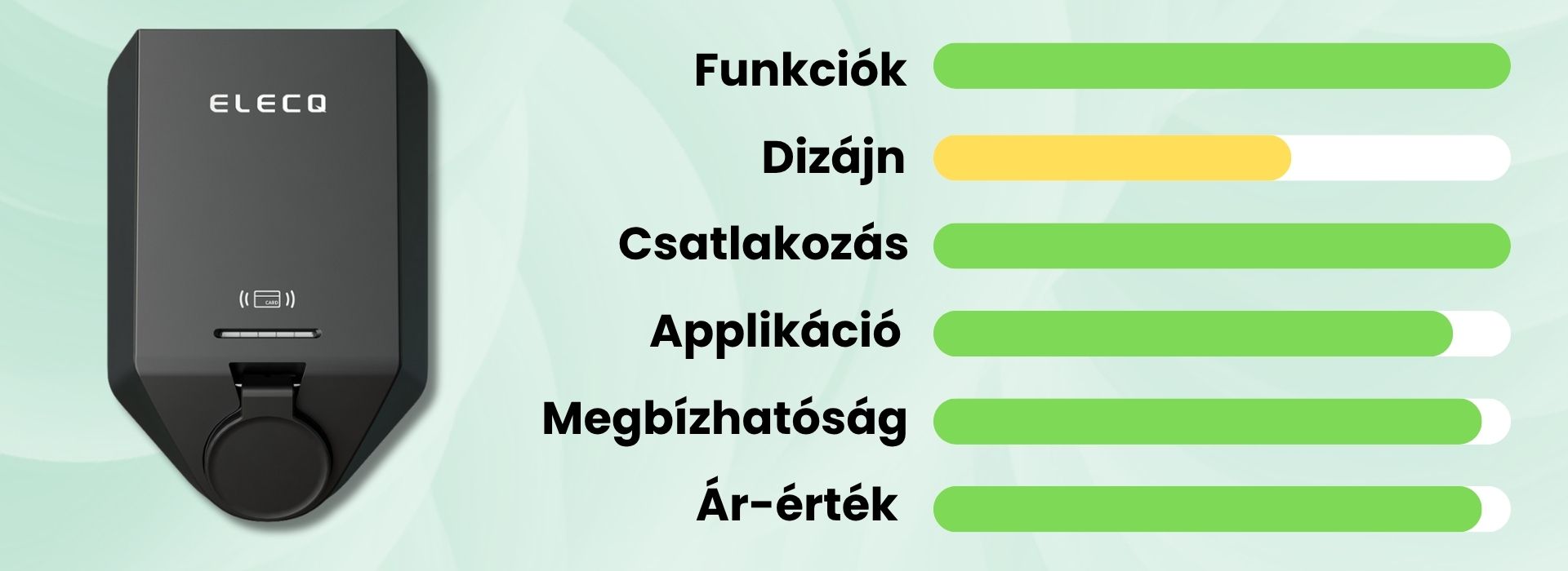 - Appilkáció: van belőle appos verzió, de ez az app felhasználói élményben nem összemérhető a Wallbox vagy az Elecq app-pal.