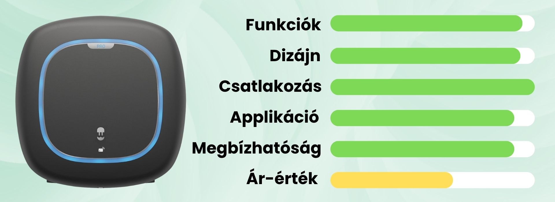 - A Smart verzióban tudunk telefonról időzítést beállítani, áramerősséget állítani és a töltési statisztikákat visszanézhetjük. Lehetőség van app-on PIN-kóddal levédeni, így akár nyilvános helyeken is felszerelhető.