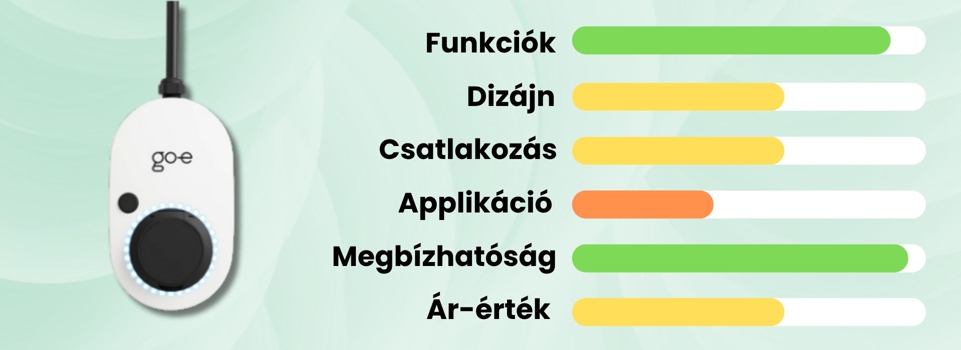 Hordozható, vagy fixen telepített verzióban is elérhető, aljzatos töltő. Osztrák gyártmány minőségi összeszerelés. Wi-Fi-n csatlakozhatunk hozzá telefonnal. A hálózatfigyelő egysége külön vásárolható (go-e Controller). A Controller csak Wi-Fi-n keresztül képes adatot szolgáltatni a töltőnek, emiatt korlátozottan telepíthető, hiszen stabil internet szükséges mind a töltő helyén, mind pedig a főelosztóban, ahová a go-e controllert be kell építeni. Ha ez rendelkezésre áll, akkor egy jól paraméterezhető, jól működő rendszert kapunk.