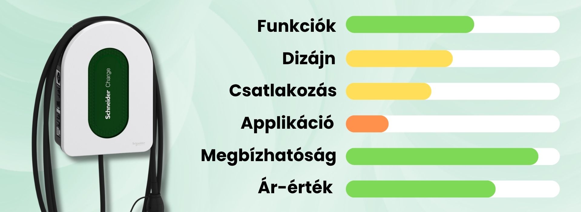 - Magyarországon nem elérhető a gyári Schneider applikáció, csak egy harmadik fél általi szoftverrel használható, ami OCPP-t használ, így internetre van szüksége, az app használatához.