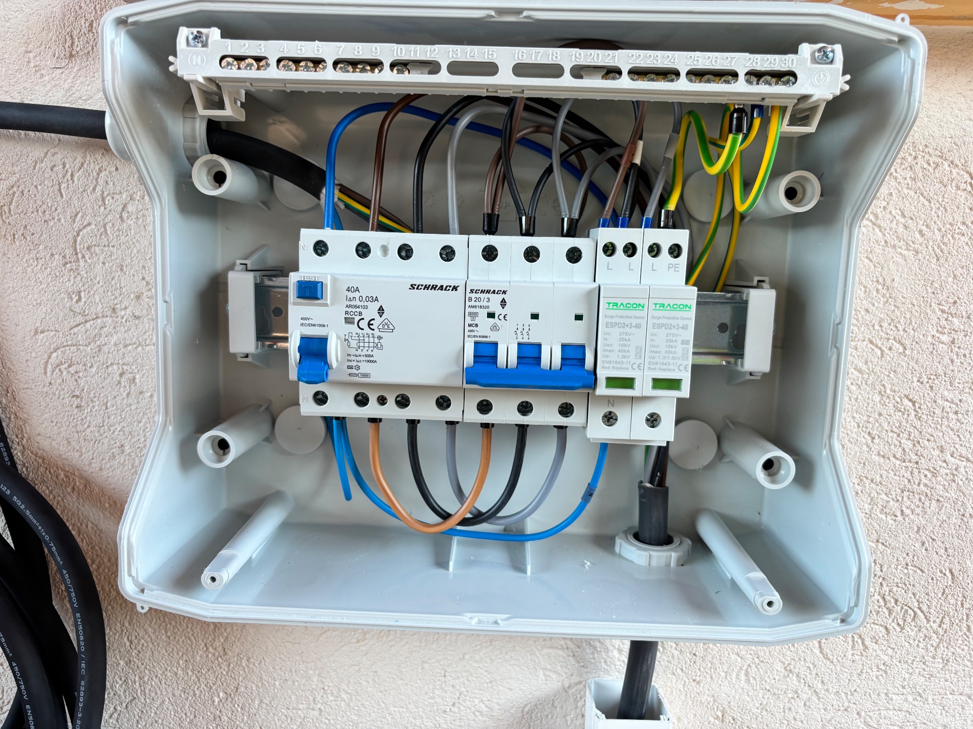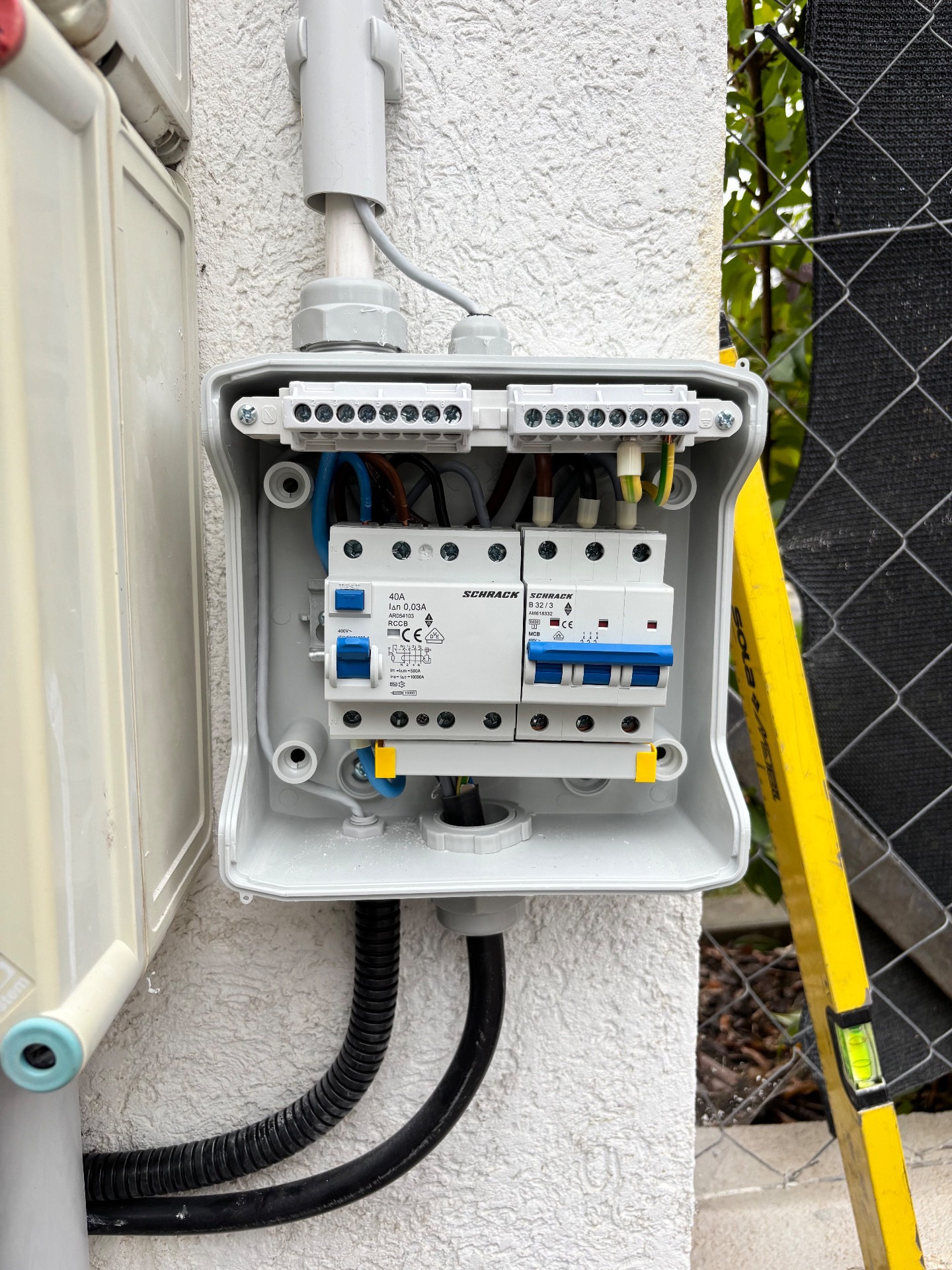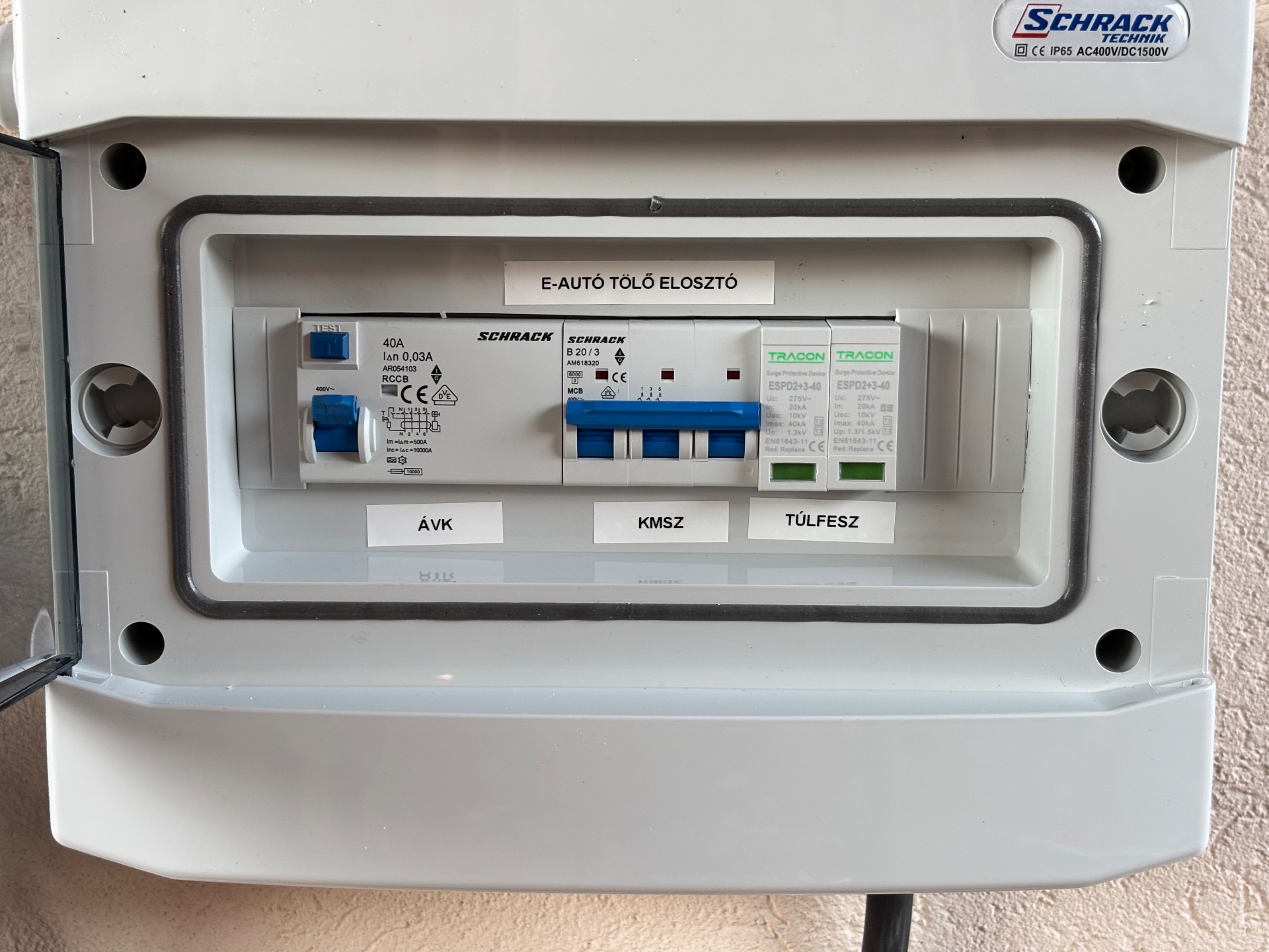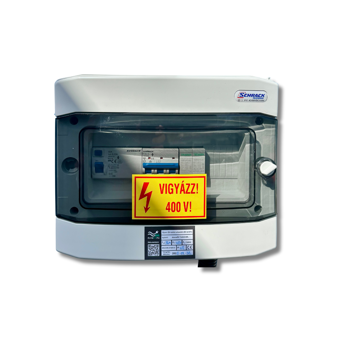 A kiselosztó tartalmaz továbbá egy 3 pólusú kismegszakítót a kiépített villamos berendezés túláramvédelme érdekében.